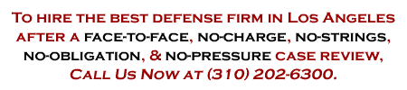 So, to hire the best defense firm in Los Angeles with a face-to-face, no-charge & no-obligation case review, call us now to arrange your free consultation: (310) 202-6300.